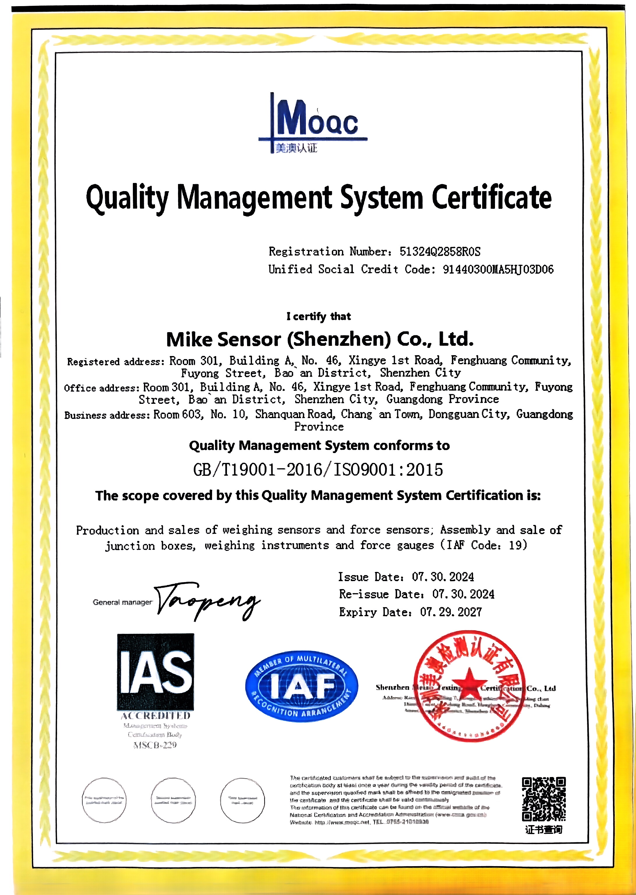 密克傳感器(深圳)有限公司主要生產的產品有測力傳感器、稱重傳感器、拉力傳感器、壓力傳感器、扭矩傳感器,多維力傳感器,電子引伸計等各類力學和稱重傳感器、及其配套儀器儀表和模塊附件的工廠。